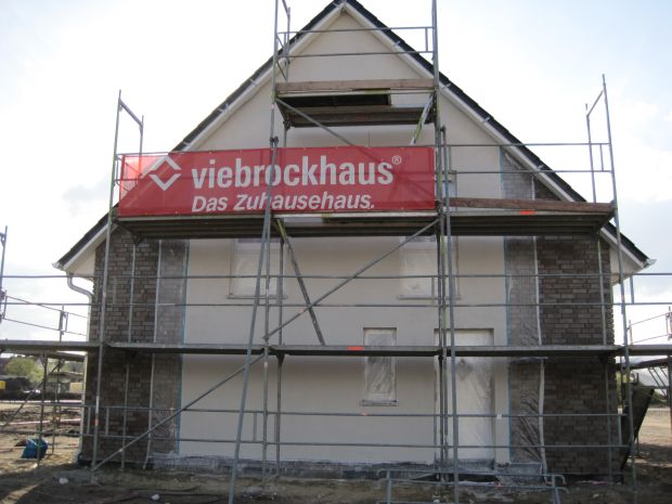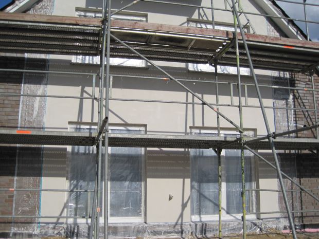 Nachdem der Elektriker seine Rohbauinstallation erfolgreich und sehr zu unserer Zufriedenheit – Danke Fa. Besser aus Harsefeld!!! beendet hat, kommen nun wieder Außenarbeiten, sodass jeder die optischen Veränderungen sehen kann. Hier die Bilder unserer frisch verputzten Giebelseiten.
